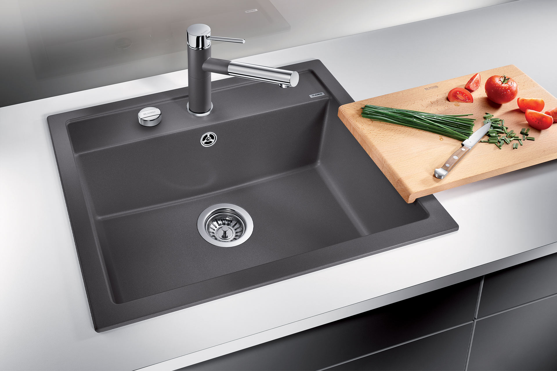 La collection DALAGO est composée de cuve fabriquées par notre partenaire BLANCO®. Cette cuve à encastrer se distingue par sa vidage automatique. La DALAGO 60 s’installe dans un sous évier de 60. Elle possède une plage pour incorporer le bouton du vidage et le mitigeur. Ainsi, la cuve DALAGO peut être encastrer dans tous les types de plan de travail. Disponible dans un très grand choix de coloris, elle s’harmonise avec tous les styles de cuisine. Découvrez l’ensemble des éviers DALAGO.