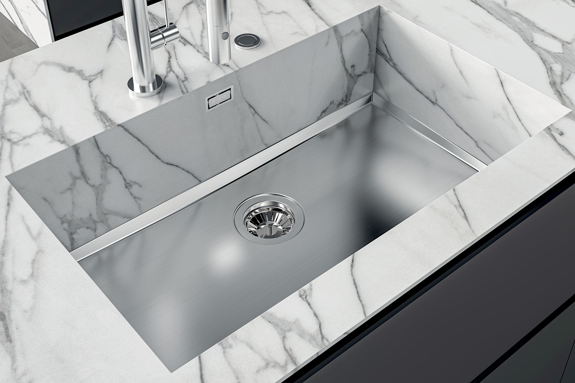 La collection HESTIA est composée de cuve à habiller. Spécialement conçus pour les plans de travail en pierre ou en matière hydrofuge, les cuves HESTIA se recouvrent et se fondent dans le plan de travail. La cuve HESTIA 71 est biseautée pour garantir l’écoulement de l’eau et faciliter son entretien. Elle s’installe dans un sous évier de 90 et pour un plan de travail de 12 mm. Découvrez l’ensemble des HESTIA et retrouvez cette collection dans un choix de packs évier-mitigeur, dans notre catalogue catalogue L’Essentiel de la cuisine