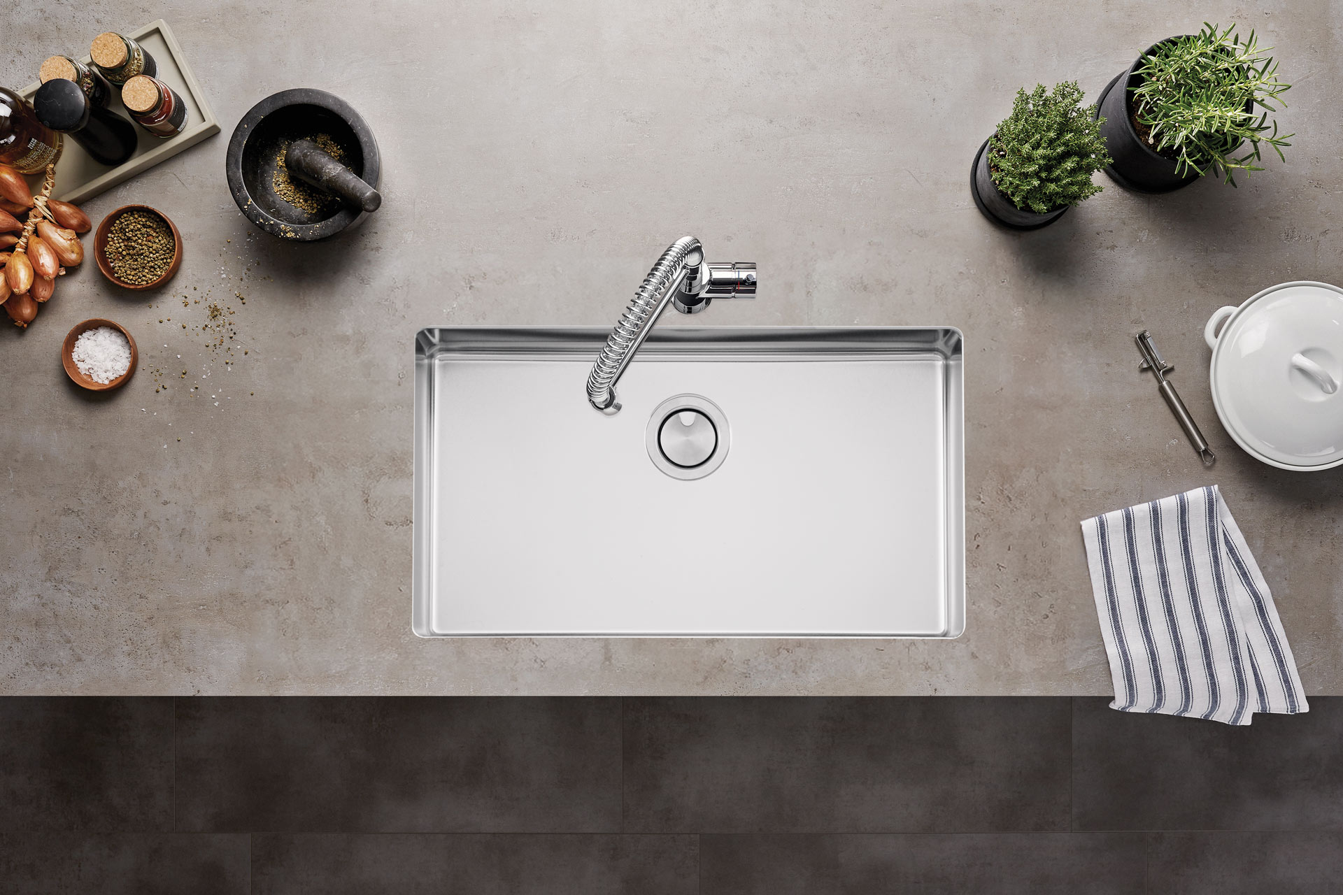 La collection SEGMA est modulable, sombre et épurée. La SEGMA 71 est une cuve sous plan, compatible avec un sous évier de 80. Elle est la cuve plus grande de la collection. Son inox lisse, sa bonde design et ses angles R15 donnent un aspect haut de gamme à cette cuve abordable. Découvrez l’ensemble des SEGMA et retrouvez cette collection dans un choix de packs évier-mitigeur, dans notre catalogue catalogue L’Essentiel de la cuisine