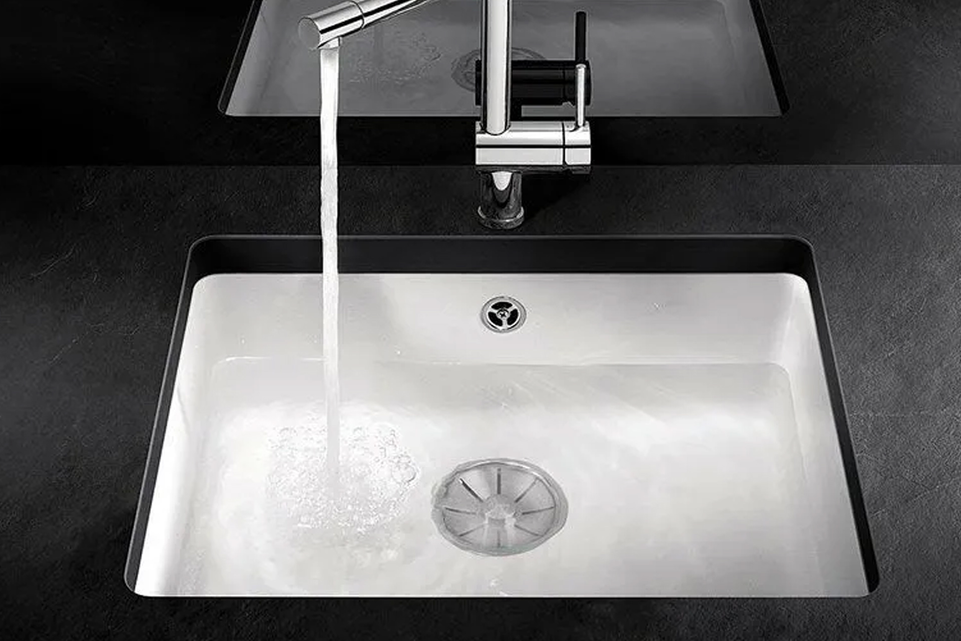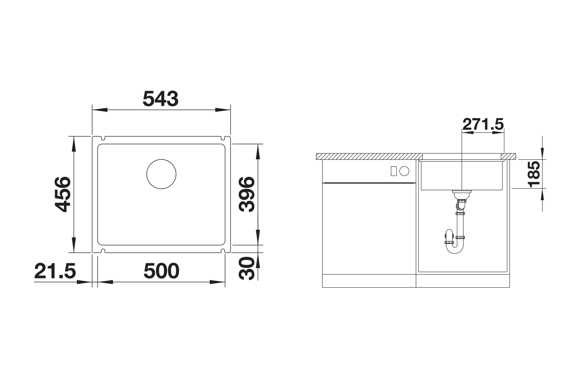 Cuve SUBLINE B500, matière Céramique, 1 cuve sous plan, livrée avec vidage manuel et siphon