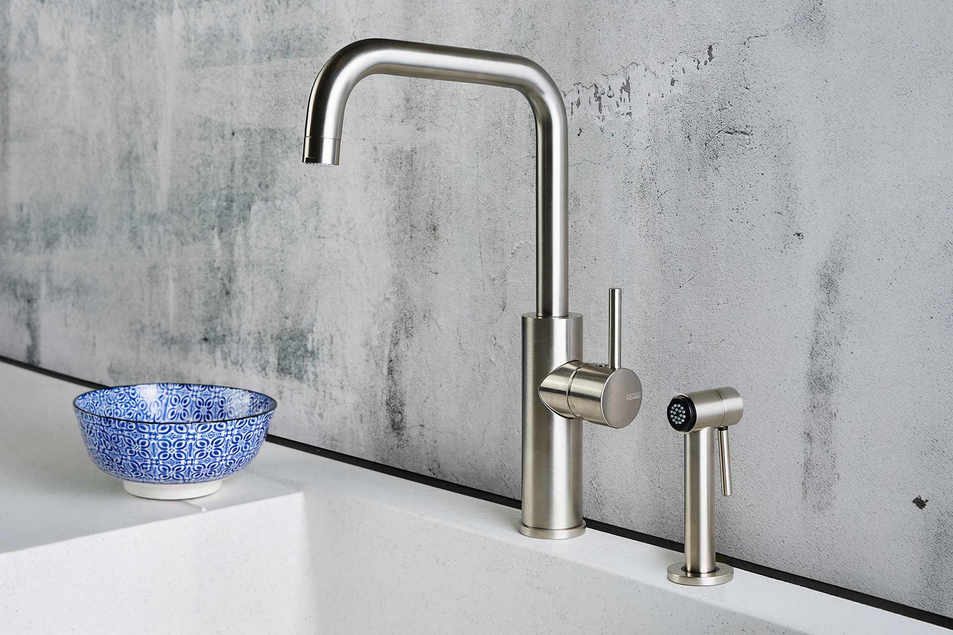Le mitigeur AULN2TDOU est un mitigeur à la douchette déportée. Il est composé d’un corps avec son bec en U avec sa manette et d’une douchette amovible posée sur le plan de travail. La douchette détient sa propre manette et sort un jet de pluie. Cette configuration permet de présenter un mitigeur moins imposant sur le point d’eau, qu’un mitigeur douchette classique. Retrouver ce mitigeur dans notre catalogue complet catalogue L’Univers de la cuisine.